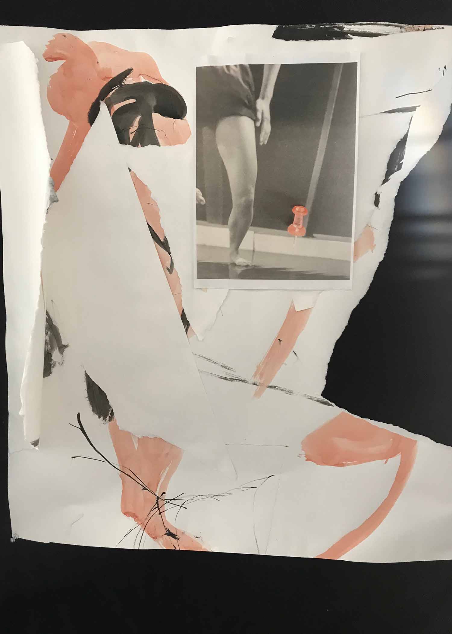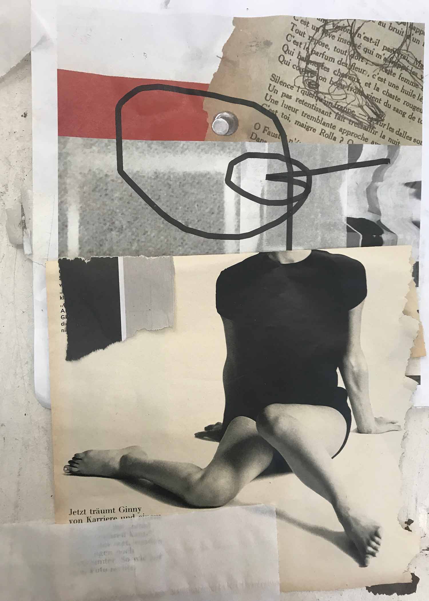 Inspired by found images, memories, everyday observations, Aude’s process evolves in the act of making, embracing odd discoveries and imperfections. Her raw and expressive life-size drawings capture full body movement in space. The collages, with a Surrealist influence, expose images which are out of context, juxtaposed, overlaid, or connected, creating abstract visual narratives.